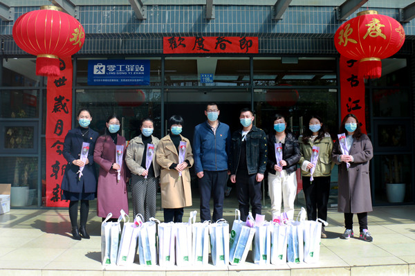福汉木业党委委员、副总经理方铭代表公司党委看望慰问下沉社区奋战在基层工作和抗疫一线的女性工作人员,为她们送上鲜花和节日礼物,感谢她们在工作中的辛勤付出,祝福她们节日快乐、生活美满,并叮嘱她们在工作中做好疫情防护。