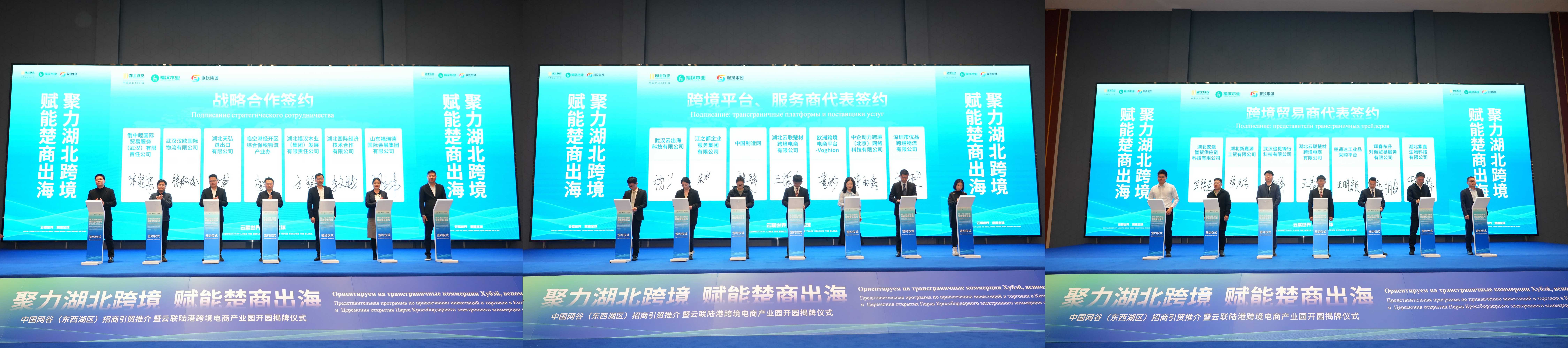 会上还同步举行多轮战略合作签约仪式,临空港经开区综合保税物流产业办与福汉木业、湖北天弘、湖北国际经合、武汉汉欧国际物流等多家单位签署战略合作协议;湖北云联楚材跨境电商有限公司与欧洲跨境电商平台Voghion、中国制造网、楚通达工业品采购平台、追觅锋行科技等跨境平台服务商、贸易商代表签约,多方携手构建跨境电商发展新格局。